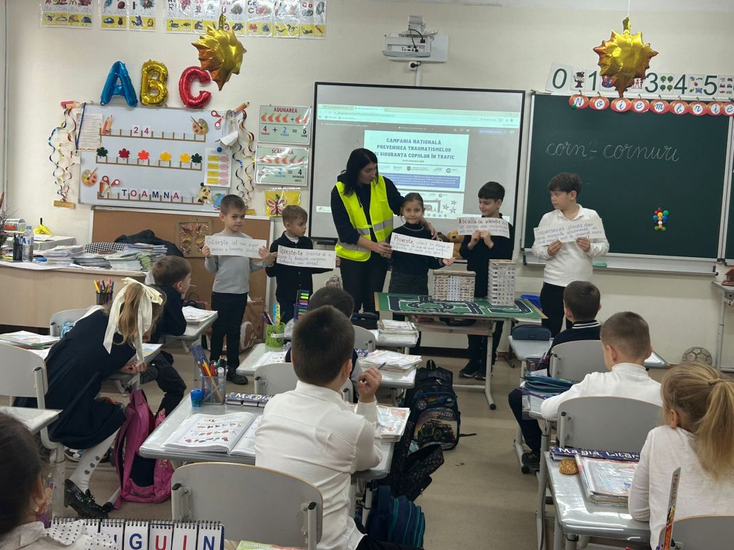 campanie prevenirea traumatismelor rutiereExerciții practice au realizat și elevii claselor primare de la Liceul Teoretic „Mihail Sadoveanu” din orașul Hîncești, care au făcut cunoștință cu principalele indicatoare rutiere și au participat la activități interactive privind modul corect de traversare a străzii și comportamentul responsabil al pietonilor. Activitatea a avut rolul de a consolida cunoștințele teoretice și de a forma deprinderi practice sigure încă de la vârste fragede.