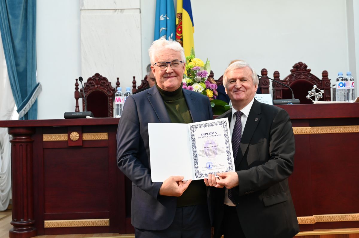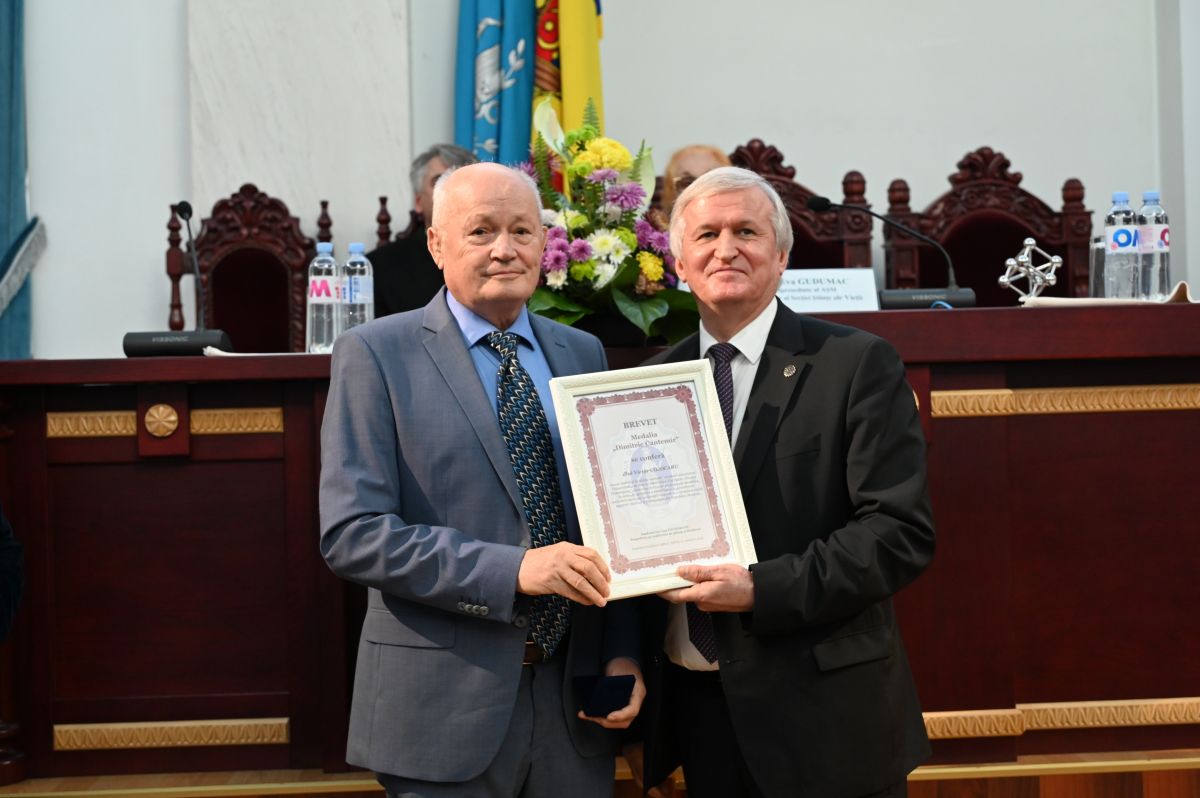 Gala Laureaților AȘMUniversitatea de Stat de Medicină şi Farmacie „Nicolae Testemiţanu” a fost menționată cu Diploma de Recunoștință a Academiei de Științe a Moldovei (AȘM), în semn de apreciere pentru promovarea excelenței în educație și cercetare în domeniul medicinei și farmaciei, pentru contribuție semnificativă la instruirea și formarea tinerei generații în spiritul valorilor culturale naționale, precum și cu prilejul celei de-a 80-a aniversări de la fondarea instituției. Diploma i-a fost înmânată prim-prorectorului Olga Cernețchi de către președintele AȘM, academicianul Ion Tighineanu, în cadrul Galei Laureaților Premiilor AȘM, organizată anual în contextul Zilei Internaționale a Științei pentru Pace și Dezvoltare, pe data de 10 noiembrie 2025.